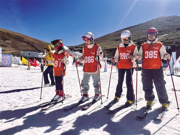 在大海草山滑雪场的雪具大厅里,游客们正忙着穿戴装备。来自昆明的叶女士正在帮女儿调整滑雪板:“昨天小家伙还有些害怕,今天就能应对自如,已经敢挑战中级雪道了。”这样的场景在这个雪季十分常见。
