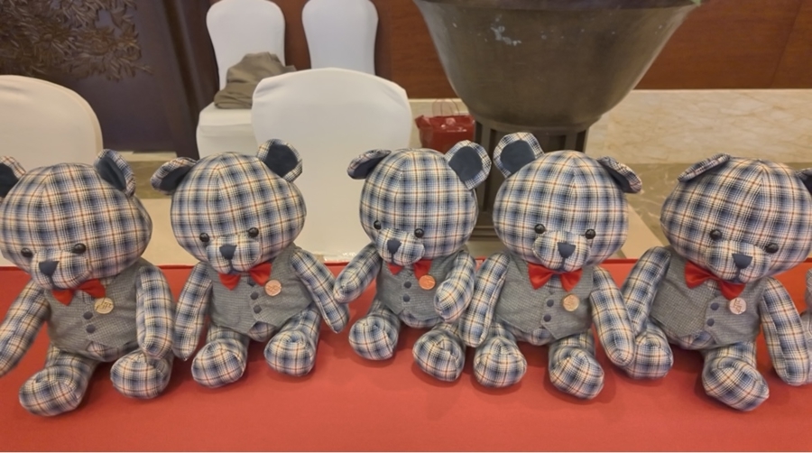 图为崇明土布制成的小熊玩偶。/王嘉旖摄