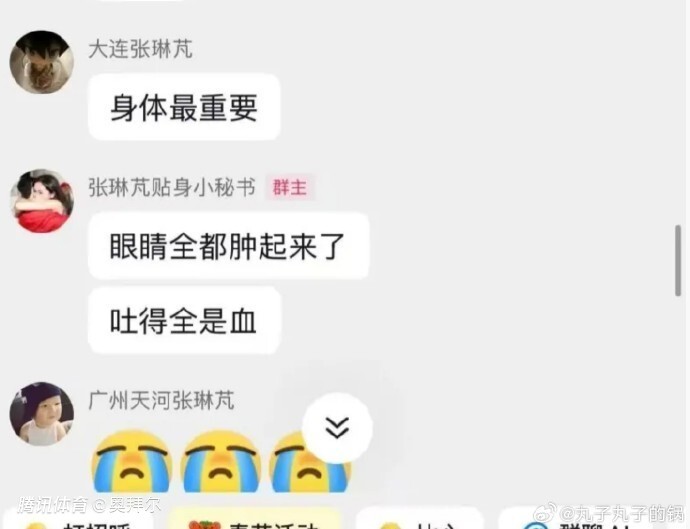 陈华则透露,张琳芃在赛前最后一次训练时鼻梁骨骨折,而且伤势严重。在其贴出的截图里,张琳芃的家属表示,“眼睛全都肿起来了,吐得全是血”。