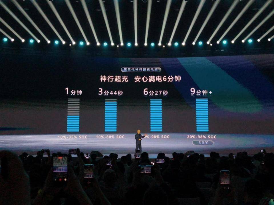 第三代神行超充电池直接把均值充电倍率拉到10C,峰值15C。10%到80% SOC只需3分44秒,10%到98% SOC只要6分10秒。零下30℃环境里,满电不到10分钟。这是什么概念?行业头部厂商今年才集体迈入6C时代,4C-5C已经下沉到15-20万车型。而神行III的补能速度,直接把对手甩开了一个代际。